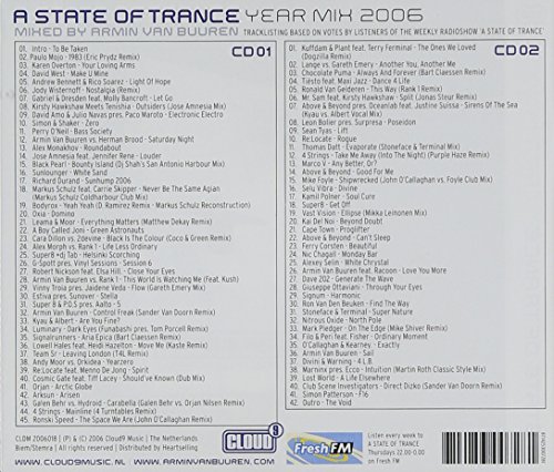 87 Of The Years Biggest Trance Numbers The mighty armin van buuren presents a massive 87 of the finest tunes of 2006, on this double mixed cd. These tunes were voted for by listeners of the weekly radio show 'a state of trance', the cd is chock full of tunes already regarded as classics