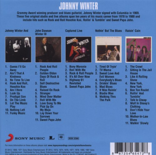 Johnny wasn't the sole property of Texas any more after these hit, and he wasn't just a Bluesman-he was a pop star, the owner of the charting LPs Johnny Winter ('69, #24), Second Winter ('69), Live Johnny Winter And ('71, #40), Still Alive and Well ('73, #22) and Saints & Sinners ('74, #42). Rock out with his hit spins on Johnny B. Goode and Jumpin' Jack Flash plus Dallas; Miss Ann; Rock Me Baby; Lucille; Thirty Days; Dirty, and more!